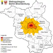 Berlim e Potsdam contribuem com mais de 80% da população total da região. A área de Brandemburgo é caracterizada por assentamentos suburbanos nos limites da cidade de Berlim e pequenas cidades na área rural externa.