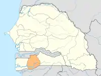 Fica situada no centro da Casamansa, fazendo fronteira a sul com a Guiné-Bissau.