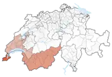 - a Oeste o Cantão de Genebra no Pequeno Lago ou Lago de Genebra, por onde sai o Ródano. [nota 1]