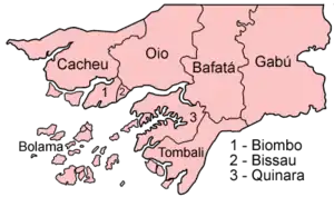 ![]() Mapa das regiões da Guiné-Bissau |