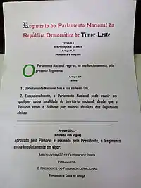 ![]() Regimento do Parlamento Nacional de Timor-Leste | |
