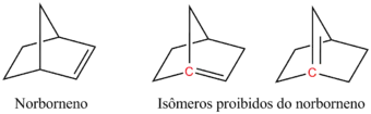 Esta observação empírica tem sido útil para a determinação de estruturas de compostos como terpenos e na interpretação de reações que envolvem compostos de anel em ponte. Por exemplo, dois dos seguintes isômeros de norborneno violam a Regra de Bredt, o que os torna muito instável para prepará-los [2]: