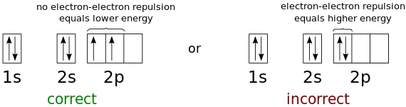 Resultados experimentais mostram que as configurações eletrônicas dos átomos no estado fundamental são tais que os elétrons tendem a ocupar orbitais de menor energia. Assim, a energia total do átomo é minimizada.[1][3]