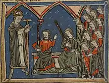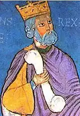 Com a morte de Fernando II, herdou o trono o seu filho Afonso VIII († 1230), que assinou como "rex legionensis et Gallecie" na maior parte dos diplomas conservados até hoje, 213 dos 322 estudados pelo historiador Julio González.[292] Esta fórmula também está presente em seus selos e letreiros enrolados,[296][297][298] já presente na época de seu pai Fernando.[299] [lower-alpha 7] Na sua representação nos túmulos de Compostela, é intitulado "rei dos leoneses e da Galiza".[301] O cronista britânico Roger de Howden († 1201) refere-se a D. Afonso como o "rei de Santiago"[302] e o francês Alberico de Trois-Fontaines († 1252 ) chama-o rei da Galiza ao narrar o casamento de uma das suas filhas ao rei de Jerusalém[303] Nesta crónica utiliza como equivalentes os nomes rei de Leão e rei da Galiza.[304]