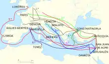 - Na Narratio de Itinere Navali,[131] itinerário dos cruzados do ano de 1189, são descritos cinco reinos na Península Ibérica: Aragão, Navarra, o dos espanhóis (muçulmanos), a Galiza e Portugal.[108]