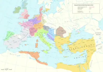 ![]() O Primeiro Reino dos Burgúndios, após o estabelecimento em Saboia partindo de 443 | |||||||||