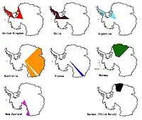 Atualmente há sete nações reivindicantes que mantêm uma reivindicação territorial em oito territórios na Antártida. Estes países procuraram instalar bases de observações científicas e estudos nos territórios reivindicados.[2]