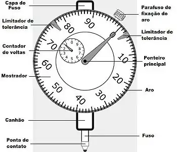 Esta é uma ferramenta dotada de uma escala e ponteiro, ligados por mecanismos diversos a uma haste com ponta de contato.