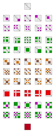- Dada uma partição de A, G é um grupo de transformação em composição, cujas órbitas são as células da partição;[11]