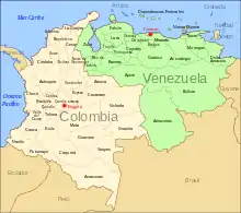 ![]() Mapa indicando localização da Colômbia e da Venezuela. | |