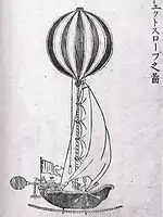 O primeiro voo de um balão de ar quente pelos irmãos Montgolfier, na França, em 1783, foi relatado em menos de quatro anos pelos holandeses em Dejima, e publicado em 1787 no livro Palavras do holandês. A nova tecnologia foi demonstrada em 1805, quase vinte anos mais tarde, quando o Suíço Johann Caspar Horner e o Prussiano Georg Heinrich von Langsdorff, dois cientistas da missão Krusenstern, que trouxe também o embaixador russo Nikolai Rezanov para o Japão, fez um balão de ar quente a parti do papel Japonês (washi), e fez uma manifestação em frente de cerca de 30 delegados Japoneses.[5][6] Os balões de ar Quente permaneceram na curiosidade, tornando-se objeto de inúmeras experiências e representações populares, até o desenvolvimento de usos militares durante o início da era Meiji.