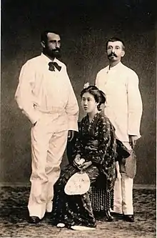 Como o Japão abriu a influência Ocidental, numerosos viajantes Ocidentais visitaram o país, tendo um grande interesse em artes e cultura. O escritor francês Pierre Loti, escreveu um de seus mais famosos romances de Madame Chrysanthème (1887), com base em seu encontro com uma jovem mulher Japonesa durante um mês,[57] – um precursor para Madame Butterfly e Miss Saigon e de um trabalho que é uma combinação de narrativa e travelog. Outro famoso Francês que visitou o Japão foi Émile Étienne Guimet, que escreveu extensivamente sobre as culturas Asiáticas e o Japão, em particular, e gostaria de criar o Museu Guimet após seu retorno.[58]