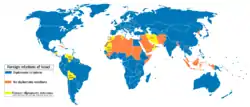 As relações exteriores de Israel referem-se aos laços diplomáticos, comerciais e culturais entre o Estado de Israel e outros países ao redor do mundo. Israel aderiu à Organização das Nações Unidas em 11 de maio de 1949. Israel mantém relações diplomáticas com 157 países.[1] Israel mantém relações diplomáticas plenas e fronteiras abertas com dois de seus vizinhos árabes, Egito e Jordânia, depois de assinar tratados de paz em 1979 e 1994, respectivamente.