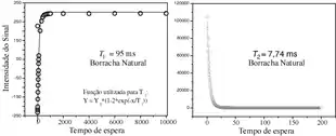 Como exemplo de medidas de tempo de relaxação, temos mostrado na Figura a ao lado um experimento no qual mede o tempo de relaxação longitudinal e relaxação transversal da borracha natural.