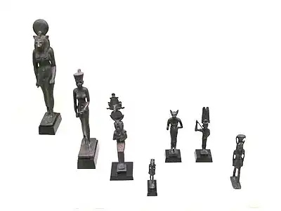 As várias divindades egípcias existentes caracterizavam-se pela sua capacidade de estar em vários locais ao mesmo tempo e de sobreviver a ataques. A maioria delas era benevolente, com excepção de algumas divindades com personalidade mais ambivalente como as deusas Sacmis e Mut.