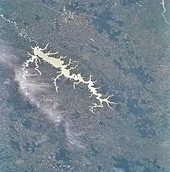 A bacia hidrográfica tem uma área de 17.800 km². Tem cerca de cem quilômetros de comprimento e em alguns trechos ultrapassa três quilômetros de largura. A represa tem um reservatório com área de 449 km², contendo um volume de água quase quatro vezes maior que o da Baía de Guanabara no Rio de Janeiro e tem uma descarga de 1.790 m³/s.