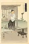 Ōishi Kuranosuke Yoshio | Ōishi Yoshio (大石良雄 1659 - 20 de Março, 1703) foi um servo (karō) na província de Harima (agora Hyōgo), Japão. Ele é conhecido como o líder dos 47 ronin em 1702, e foi o principal nome da vingança contra Kira. Oishi, era um seguidor do escritor do século 17 Yamaga Soko (1622-1685), cuja filosofia incluía a adaptação do samurai ao Confucionismo, e pregava que um homem não poderia permitir que o inimigo de seu pai vivesse sob o mesmo céu que ele.[3] | ||||||||||