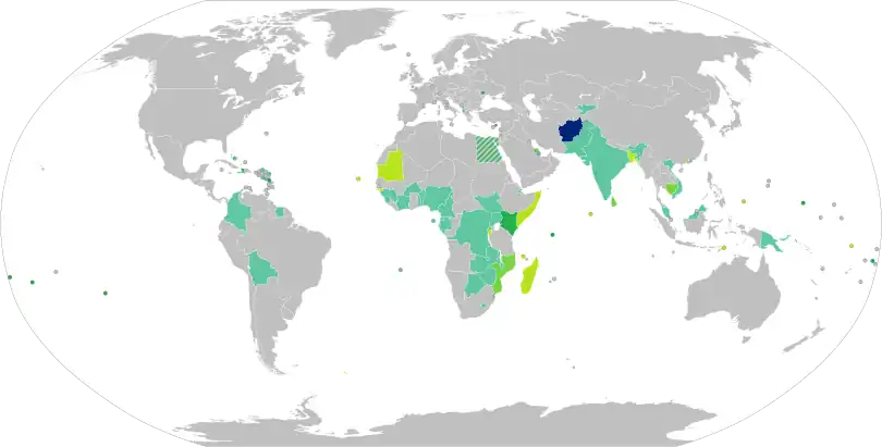 | Visto gratuito na chegada[3][33] | 30 dias | ||