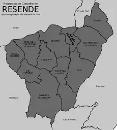 É sede do Município de Resende que tem uma área total de 123,35 km2[2], 10 051 habitantes[3] em 2021 e, assim, uma densidade populacional de 81 habitantes por km2, estando subdividido em 11 freguesias[4]. O município é limitado a norte pelos municípios de Baião e Mesão Frio, a leste por Lamego, a sul por Castro Daire e a oeste por Cinfães.