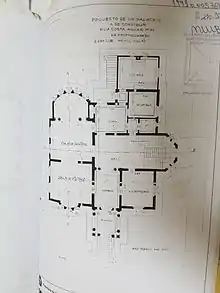 A casa possui dois andares, onde a distribuição dos cômodos é feita da seguinte maneira: no piso térreo, após o ingresso feito pelo portão a pessoa se depara com um vestíbulo. A direita está localizado um escritório e a esquerda uma sala de visitas com abertura para uma sala de jantar. Da sala de jantar é possível sair para o hall principal, que dá acesso ao piso superior ou para a copa. Da copa é possível chegar ao lavabo e ao banheiro, ou à despensa. Por fim, o andar inferior tem uma cozinha, com pouco mais de 16m² de área. Ao subir as escadas que levam ao piso superior, se encontra uma galeria repleta de quadros e suportada por doze pilastras. A direita da escadaria encontra-se um lavatório, com 6,6 m² de área e um banheiro com 8,25m². Seguindo em frente, se acessa um dos dormitórios, este possui um espaço externo – terraço, com visão para a parte de trás da casa. O dormitório também dá passagem ao dormitório vizinho, um pouco maior, e este possui um toillet, funcionando como se fosse uma suíte. Este toillet é a única maneira de acessar o terraço frontal do piso superior da casa. Por fim, a esquerda da escadaria se tem passagem para o último dormitório do imóvel, este é um pouco menor e não tem terraço, nem banheiro conjunto.[1]