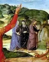 | “ | Trata-se de uma qualidade essencialmente coreográfica já evidente no 'assassino' da predella Raleigh (O Milagre de São Jerônimo que Salva Silvano e Pune Sabiniano, North Carolina Museum of Art), posteriormente desenvolvida no São Miguel Arcanjo (Louvre, Paris) e maximizada na figura de 'Heliodoro' (Expulsão de Heliodoro do Templo, Stanza di Eliodoro, Vaticano). A preocupação com o ponto de equilíbrio figura-espaço circundante, traduzida em uma leve e graciosa estrutura estelar, é uma qualidade tipicamente rafaelesca, alheia ao universo úmbrio, como alheia a esse universo é também a pronunciada perspectiva da tumba e, enfim, a orquestração espacial da obra. | ” |