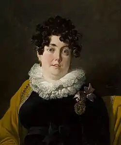 Na obra, a marquesa aparece, corpulenta e sorridente, no contexto do luto da rainha Maria I, de quem era dama de companhia. Porta a Ordem Real de Santa Isabel, instaurada por Carlota Joaquina no ano em que o quadro é produzido.[2]