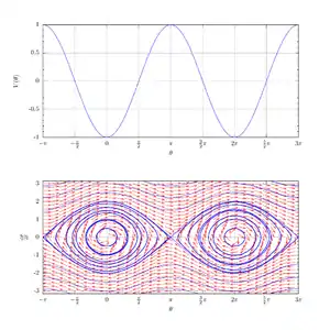 Sabendo as condições iniciais deste sistema, podemos descreve-lo como uma função do tempo se as condições de posição inicial e velocidade inicial é dada. Pode-se considerar das duas quantidades e como sendo coordenadas de um ponto em um espaço bidimensional, que é chamado de espaço de fase.