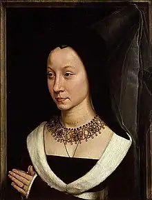 Em 1953, Erwin Panofsky estabeleceu que as datas de Schöne eram, pelo menos, vinte anos demasiado cedo. Na sua perspectiva, o vestido da jovem parece-se com a alta-costura burgúndia de finais da década de 1460 a meados da de 1470. Ele compara o hennin usado por Maria Portinari num retrato de c. 1470 de Hans Memling, e o seu vestido àquele usado por uma senhora numa iluminura dos anos 1470 de Froissart de Luís de Gruuthuse de Bruges.[28] Sterling, datando o trabalho de c. 1465, refere que o hennin do painel de Berlim é de um tipo diferente daquele do da pintura de Nova Iorque. O hennin de Nova Iorque é mais comprido e aparenta ser de um estilo na moda um anos mais tarde, e, para além disso, falta-lhe o véu.[9] Sterling nota ainda que o painel tem uma profundidade de campo maior e um detalhe de luminosidade mais complexo que os primeiros trabalhos de Christus. Nesta base, ele acredita que o retrato foi elaborado numa fase mais tardia da carreira do artista.[9]