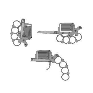 Trata-se de um modelo 3 em 1, sem cano, desenvolvido para combate de curtíssima distância: Um soco inglês, um canivete e um revólver em apenas uma peça[2].