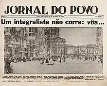 No Rio de Janeiro, ainda no dia 7 de outubro, foi lançado o primeiro número do periódico Jornal do Povo, editado por Aparício Torelly e ligado ao PCB. Durante a semana seguinte ao conflito, o jornal dedicou várias reportagens ao episódio paulista, procurando descrever o acontecimento de forma satírica e fazer pilhéria dos integralistas. Uma das suas manchetes da semana seguinte ao evento foi “Um integralista não corre, voa”, seguida de um texto, abaixo de uma imagem do conflito: “A debandada integralista, como se vê, foi na mais perfeita desordem. Vê-se à esquerda um galinha-verde escondido atrás do poste, e no centro vários acocorados. A retirada dos 10 mil… Salve-se quem puder! E os integralistas, que gostam de frases sonoras bem sonantes, repetiam nessa hora, acompanhados pela castanhola dos dentes: morra meu pai que é mais velho!".[46]