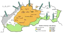 Com o avanço das forças soviéticas e a crescente impopularidade do regime filo-fascista do monsenhor Jozef Tiso, os alemães e o governo estudaram a possibilidade de uma ocupação completa do país.[1] Dado este risco e para facilitar o avanço soviético, o Conselho Nacional Eslovaco (SNR) lançou uma insurreição em 29 de agosto de 1944 em Banska Bystrica.[1] Logo os rebeldes controlaram grande parte do centro-oeste do país. Fracassaram, no entanto, na captura da capital.[1]