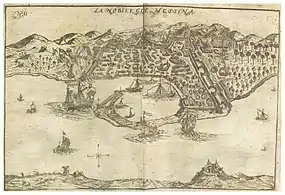 Em 27 de setembro de 1674 Vivonne enviou Jean-Baptiste de Valbelle para ajudar os rebeldes com um comboio de navios de abastecimento escoltado por um esquadrão de sete navios de guerra e três navios de combate.[3] Valbelle aproveitou a maré e um vento de popa para acelerar através do canal, passando pelas galés e entrando na cidade, trazendo provisões suficientes para cerca de cinco semanas.[3] Valbelle ajudou os messinenses a expulsar os espanhóis do último forte, o Faro na entrada do porto. Na falta de provisões e forças terrestres suficientes para agir contra os espanhóis, ele partiu para pedir assistência mais efetiva.[4]