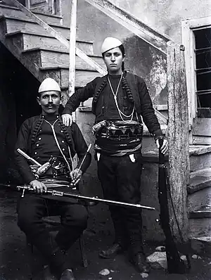 ![]() ![]() Acima: Kachaks controlando uma estrada no Kosovo, década de 1920 Abaixo: Azem Galica e Šota Galica, líderes dos Kachaks de Drenica. | ||||