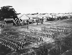 ![]() Rua de Nanquim em Xangai após a Revolta de Xangai, pendurada com as bandeiras das Cinco Raças Sob Uma União então usadas pelos revolucionários em Xangai e no norte da China. | |||