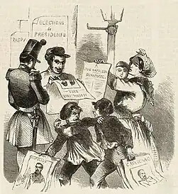 O general Cavaignac foi lançado candidato às eleições presidenciais de dezembro de 1848. Apesar de ter agido brutalmente contra os operários parisienses, por ser republicano convicto ele era suspeito ao Partido da Ordem, o mais organizado nacionalmente de todos os partidos. No mesmo momento, surgia um "aventureiro", Luís Napoleão Bonaparte, sobrinho de Napoleão Bonaparte, que se apresentava como mantedor da ordem e tinha sobrenome conhecido e respeitado por milhões de franceses. Os operários de Paris votaram nele para que o general Cavaignac não fosse eleito e os camponeses também o fizeram em homenagem ao tio, que havia garantido suas propriedades, quando o clero e a nobreza ameaçavam retomá-las. Assim, Luís Napoleão foi eleito com 5,5 milhões de votos contra 1,5 milhão de seu concorrente.