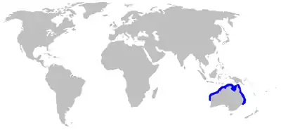 O tubarão-bico-fino-australiano como o próprio nome já diz, é encontrado no Oceano Pacífico ocidental, em águas marinhas costeiras de climas tropicais no oriente, norte e ocidente da Austrália e ao largo da Papua-Nova Guiné, de profundidades de até 300 metros.