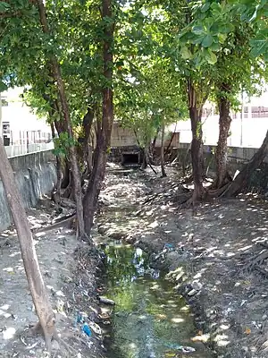 Atualmente, corre, em grande parte, incluindo a sua nascente, em galerias subterrâneas. Encontra-se bastante poluído devido ao descarte clandestino de esgoto doméstico e resíduos sólidos.[2][3]