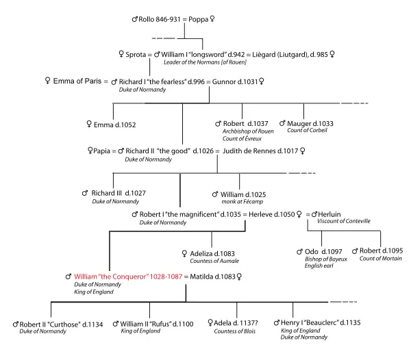 - Leonor da Normandia (c. 1011 / 3), casada com Balduíno IV da Flandres[4] (980 - 30 de maio de 1035),[5][6] conde da Flandres.