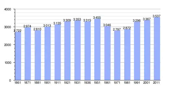 | Variação demográfica do município entre 1861 e 2011[3] |