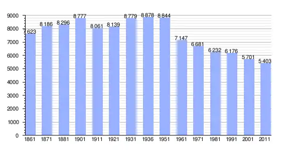 | Variação demográfica do município entre 1861 e 2011[3] |