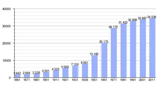 | Variação demográfica do município entre 1861 e 2011[3] |