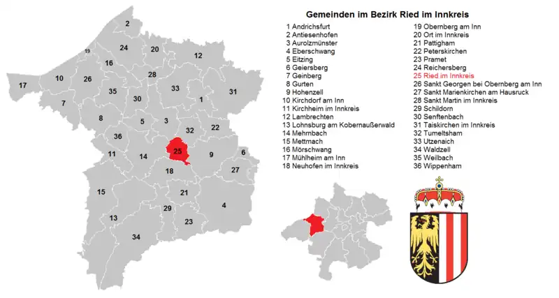 | Localização de Distrito de Ried im Innkreis no estado de Alta Áustria | |