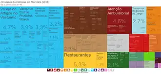 - Ministério do Trabalho e Previdência Social (2014). «Atividades Econômicas em Rio Claro (2014): Total de Estabelecimentos». DataViva. Consultado em 8 de agosto de 2017
