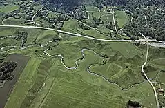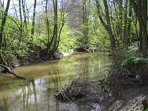 O vale tem um paisagem variada de ravinas com vastos campos e colinas, bem como florestas de árvores caducas (ulmo, freixo e carvalho) e clareiras abertas para pastagem de animais. No vale também crescem silenes e mercuriais e perto de Angerede há o maior bosque de aveleiros do município.[2] Entre Grebo e Angerede, o rio flui por extensa área agrícola, e de Angerede e zonas a oeste, o vale é usado como área residencial e comercial. Na jusante de Ytterstad há uma área de grande interesse geocientífico, com uma paisagem de desfiladeiro pela qual a água se arrasta. As encostas de praia em alguns lugares têm mais de 20 metros de altura. Segundo relatórios da Natura 2000, o estado ecológico da área de captação é classificado como moderado, ao passo que a área de drenagem é básica na parte inferior e ácida na parte superior.[10]