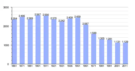 | Variação demográfica do município entre 1861 e 2011[3] |