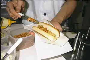 O ristede løg pode ser usado como complemento de cachorros-quentes e de hambúrgueres, assim como de sanduíches e saladas.[2]