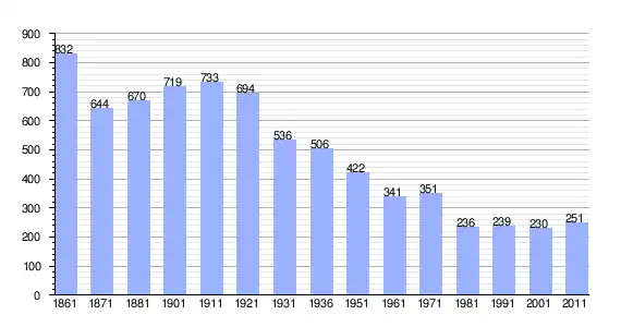| Variação demográfica do município entre 1861 e 2011[3] |