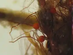 Em fungos, os rizoides são pequenas ramificações das hifas que crescem para baixo a partir dos estolhos que ancoram o fungo ao substrato], que para além da função de fixação libertam enzimas digestivas que permitem ao organismo absorver o material orgânico digerido. Essas estruturas levam a que os fungos sejam considerados organismos heterotróficos por absorção.