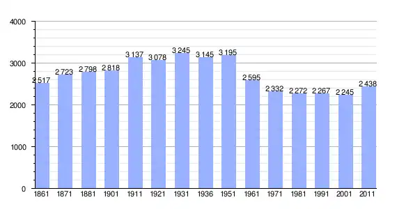 | Variação demográfica do município entre 1861 e 2011[3] |