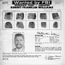 Em 28 de agosto de 1961, o FBI emitiu um mandado em Charlotte, na Carolina do Norte, acusando Williams de sair ilegalmente do estado para evitar processos por sequestro. O documento do FBI lista Williams como um "escritor freelancer e zelador (...) [Williams] (...) já fora diagnosticado como esquizofrênico e já fez apologia à violência (...) considerado armado e extremamente perigoso". Depois que um pôster de procurado, assinado pelo diretor J. Edgar Hoover, foi distribuído, Williams decidiu deixar o país.[46]